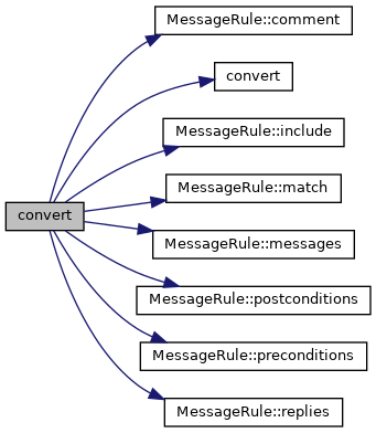References MessageRule::comment(), convert(), MessageRule::include(), MessageRule::match(), MessageRule::messages(), MessageRule::postconditions(), MessageRule::preconditions(), and MessageRule::replies().