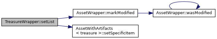 References AssetWrapper::AssetUpdated, list, AssetWrapper::markModified(), AssetTWrapper< treasure >::myWrappedItem, and AssetWithArtifacts< treasure >::setSpecificItem().