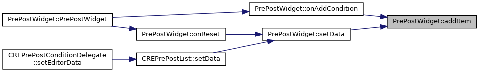 Referenced by addItem(), onAddCondition(), onDeleteCondition(), PrePostWidget(), and setData().