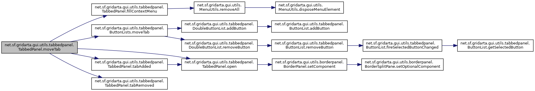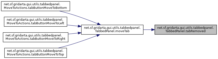 References net.sf.gridarta.gui.utils.tabbedpanel.TabbedPanel.buttonLists, net.sf.gridarta.gui.utils.tabbedpanel.TabbedPanel.fillContextMenu(), net.sf.gridarta.gui.utils.tabbedpanel.ButtonLists.moveTab(), net.sf.gridarta.gui.utils.tabbedpanel.TabbedPanel.open(), net.sf.gridarta.gui.utils.tabbedpanel.TabbedPanel.tabAdded(), and net.sf.gridarta.gui.utils.tabbedpanel.TabbedPanel.tabRemoved().