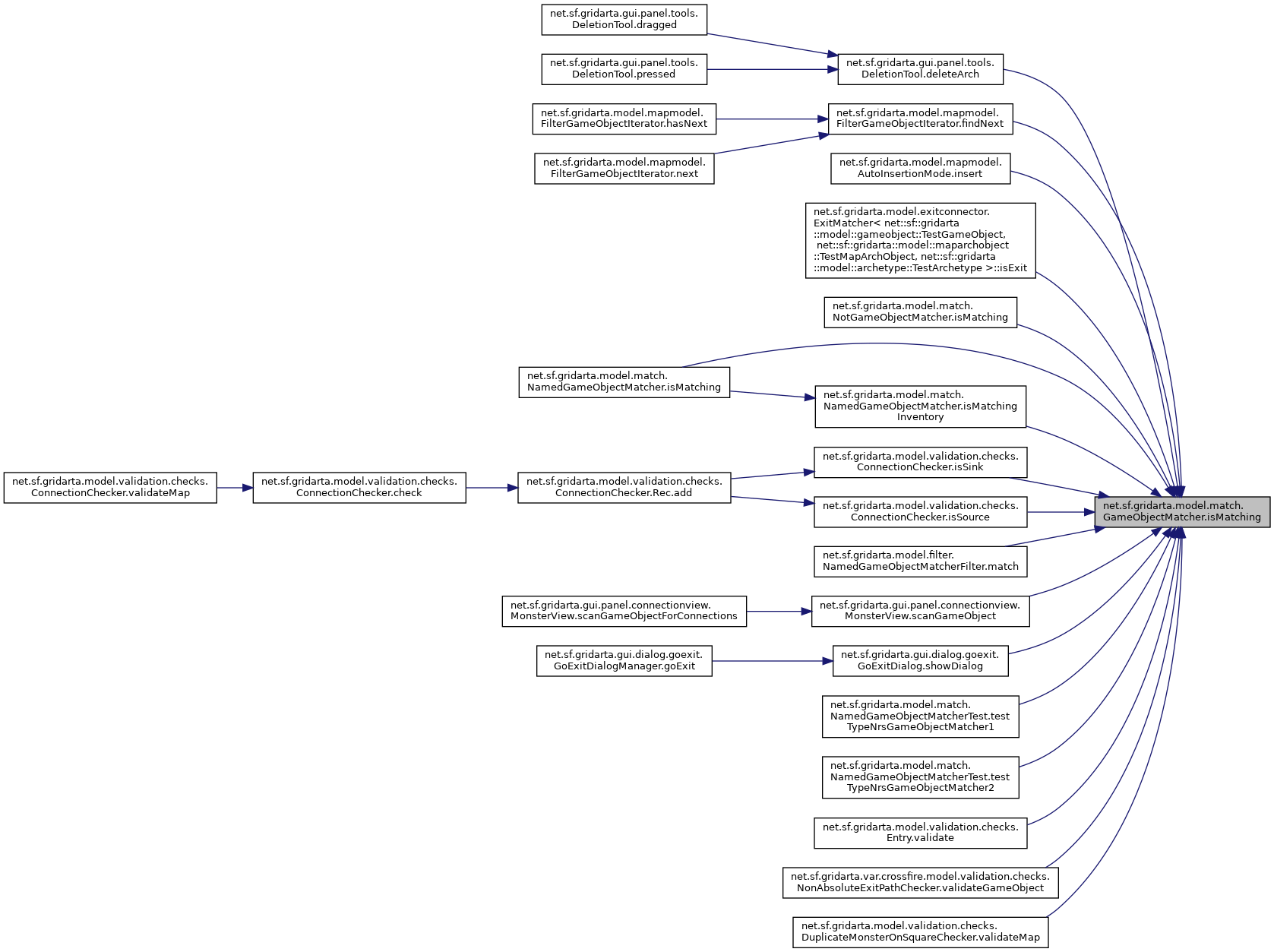 Referenced by net.sf.gridarta.gui.panel.tools.DeletionTool< G extends GameObject< G, A, R, A extends MapArchObject< A, R extends Archetype< G, A, R >.deleteArch(), net.sf.gridarta.model.mapmodel.FilterGameObjectIterator< G extends GameObject< G, A, R, A extends MapArchObject< A, R extends Archetype< G, A, R >.findNext(), net.sf.gridarta.model.mapmodel.AutoInsertionMode.insert(), net.sf.gridarta.model.exitconnector.ExitMatcher< net.sf.gridarta.model.gameobject.TestGameObject, net.sf.gridarta.model.maparchobject.TestMapArchObject, net.sf.gridarta.model.archetype.TestArchetype >.isExit(), net.sf.gridarta.model.match.NotGameObjectMatcher.isMatching(), net.sf.gridarta.model.match.NamedGameObjectMatcher.isMatching(), net.sf.gridarta.model.match.NamedGameObjectMatcher.isMatchingInventory(), net.sf.gridarta.model.validation.checks.ConnectionChecker< G extends GameObject< G, A, R, A extends MapArchObject< A, R extends Archetype< G, A, R >.isSink(), net.sf.gridarta.model.validation.checks.ConnectionChecker< G extends GameObject< G, A, R, A extends MapArchObject< A, R extends Archetype< G, A, R >.isSource(), net.sf.gridarta.model.filter.NamedGameObjectMatcherFilter.match(), net.sf.gridarta.gui.panel.connectionview.MonsterView< G extends GameObject< G, A, R, A extends MapArchObject< A, R extends Archetype< G, A, R >.scanGameObject(), net.sf.gridarta.gui.dialog.goexit.GoExitDialog< G extends GameObject< G, A, R, A extends MapArchObject< A, R extends Archetype< G, A, R >.showDialog(), net.sf.gridarta.model.match.NamedGameObjectMatcherTest.testTypeNrsGameObjectMatcher1(), net.sf.gridarta.model.match.NamedGameObjectMatcherTest.testTypeNrsGameObjectMatcher2(), net.sf.gridarta.model.validation.checks.Entry< G extends GameObject< G, A, R, A extends MapArchObject< A, R extends Archetype< G, A, R >.validate(), net.sf.gridarta.var.crossfire.model.validation.checks.NonAbsoluteExitPathChecker.validateGameObject(), and net.sf.gridarta.model.validation.checks.DuplicateMonsterOnSquareChecker< G extends GameObject< G, A, R, A extends MapArchObject< A, R extends Archetype< G, A, R >.validateMap().