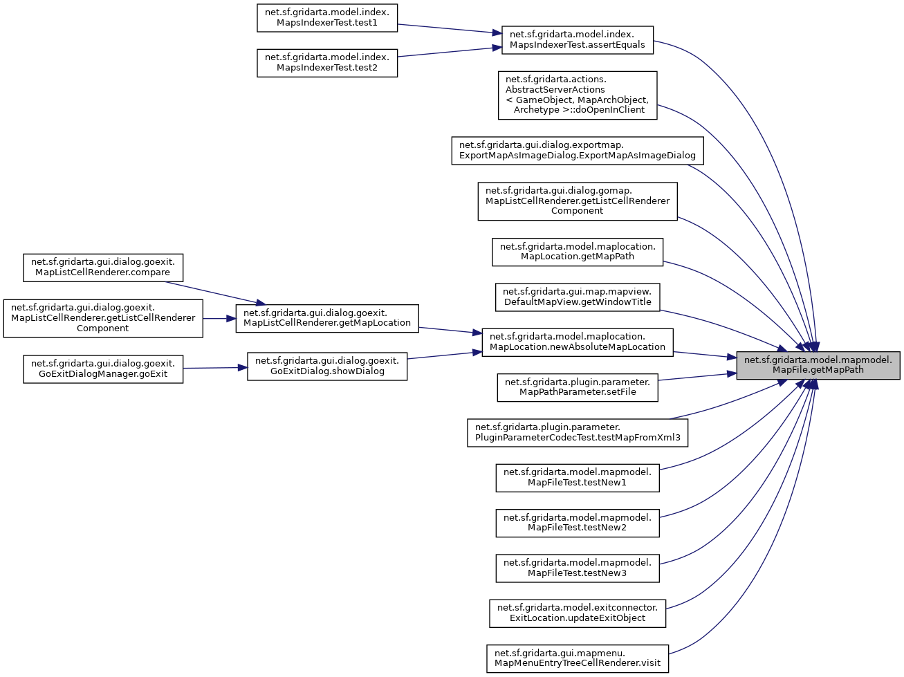 Referenced by net.sf.gridarta.model.index.MapsIndexerTest.assertEquals(), net.sf.gridarta.actions.AbstractServerActions< GameObject, MapArchObject, Archetype >.doOpenInClient(), net.sf.gridarta.gui.dialog.exportmap.ExportMapAsImageDialog< G extends GameObject< G, A, R, A extends MapArchObject< A, R extends Archetype< G, A, R >.ExportMapAsImageDialog(), net.sf.gridarta.gui.dialog.gomap.MapListCellRenderer.getListCellRendererComponent(), net.sf.gridarta.model.maplocation.MapLocation.getMapPath(), net.sf.gridarta.gui.map.mapview.DefaultMapView< G extends GameObject< G, A, R, A extends MapArchObject< A, R extends Archetype< G, A, R >.getWindowTitle(), net.sf.gridarta.model.maplocation.MapLocation.newAbsoluteMapLocation(), net.sf.gridarta.plugin.parameter.MapPathParameter< G extends GameObject< G, A, R, A extends MapArchObject< A, R extends Archetype< G, A, R >.setFile(), net.sf.gridarta.plugin.parameter.PluginParameterCodecTest.testMapFromXml3(), net.sf.gridarta.model.mapmodel.MapFileTest.testNew1(), net.sf.gridarta.model.mapmodel.MapFileTest.testNew2(), net.sf.gridarta.model.mapmodel.MapFileTest.testNew3(), net.sf.gridarta.model.exitconnector.ExitLocation.updateExitObject(), and net.sf.gridarta.gui.mapmenu.MapMenuEntryTreeCellRenderer.visit().
