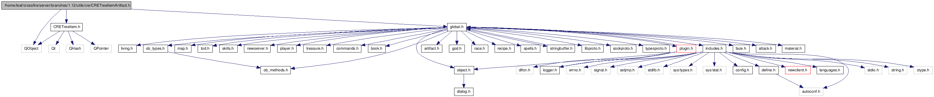 /home/leaf/crossfire/server/branches/1.12/utils/cre/CRETreeItemArtifact.h File Reference