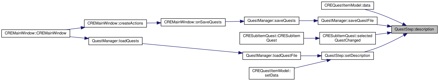 Referenced by CREQuestItemModel::data(), QuestManager::saveQuestFile(), CRESubItemQuest::selectedQuestChanged(), and setDescription().