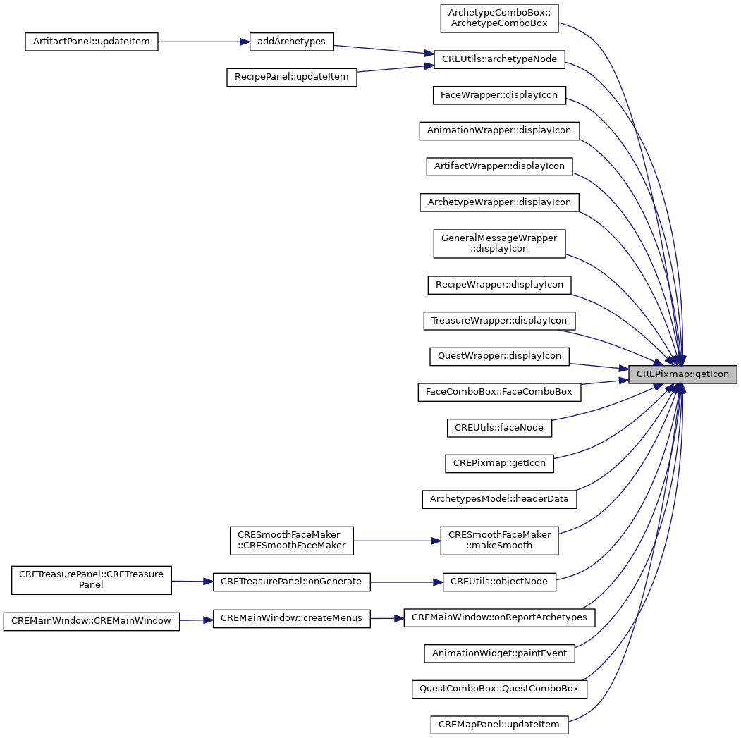Referenced by ArchetypeComboBox::ArchetypeComboBox(), CREUtils::archetypeNode(), AnimationWrapper::displayIcon(), FaceWrapper::displayIcon(), ArtifactWrapper::displayIcon(), ArchetypeWrapper::displayIcon(), GeneralMessageWrapper::displayIcon(), RecipeWrapper::displayIcon(), TreasureWrapper::displayIcon(), QuestWrapper::displayIcon(), FaceComboBox::FaceComboBox(), CREUtils::faceNode(), getIcon(), ArchetypesModel::headerData(), CRESmoothFaceMaker::makeSmooth(), CREUtils::objectNode(), CREMainWindow::onReportArchetypes(), AnimationWidget::paintEvent(), QuestComboBox::QuestComboBox(), and CREMapPanel::updateItem().