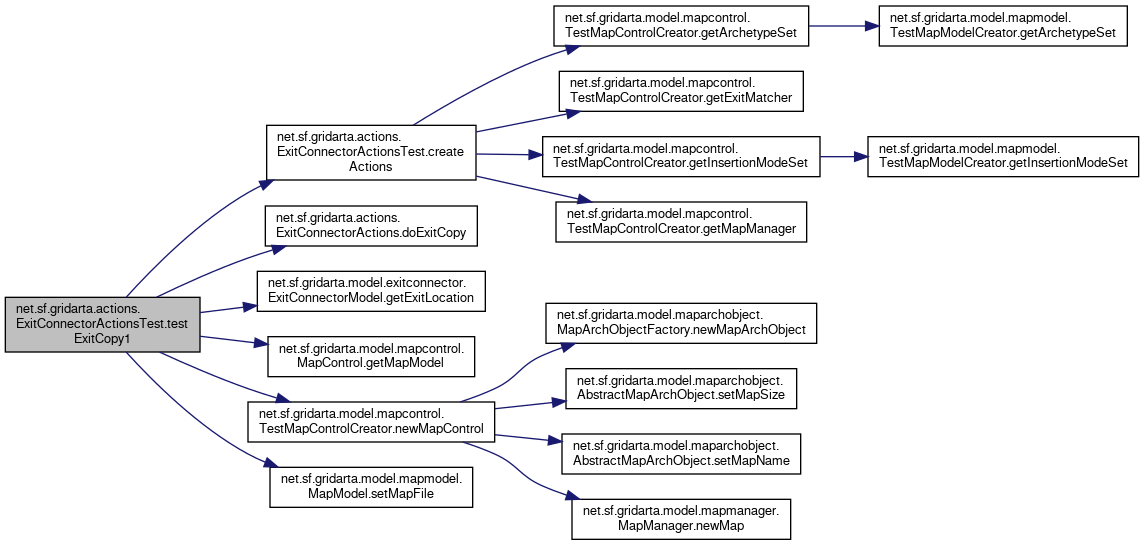 Here is the call graph for this function:| void net.sf.gridarta.actions.ExitConnectorActionsTest.testExitCopy1 | ( | ) |