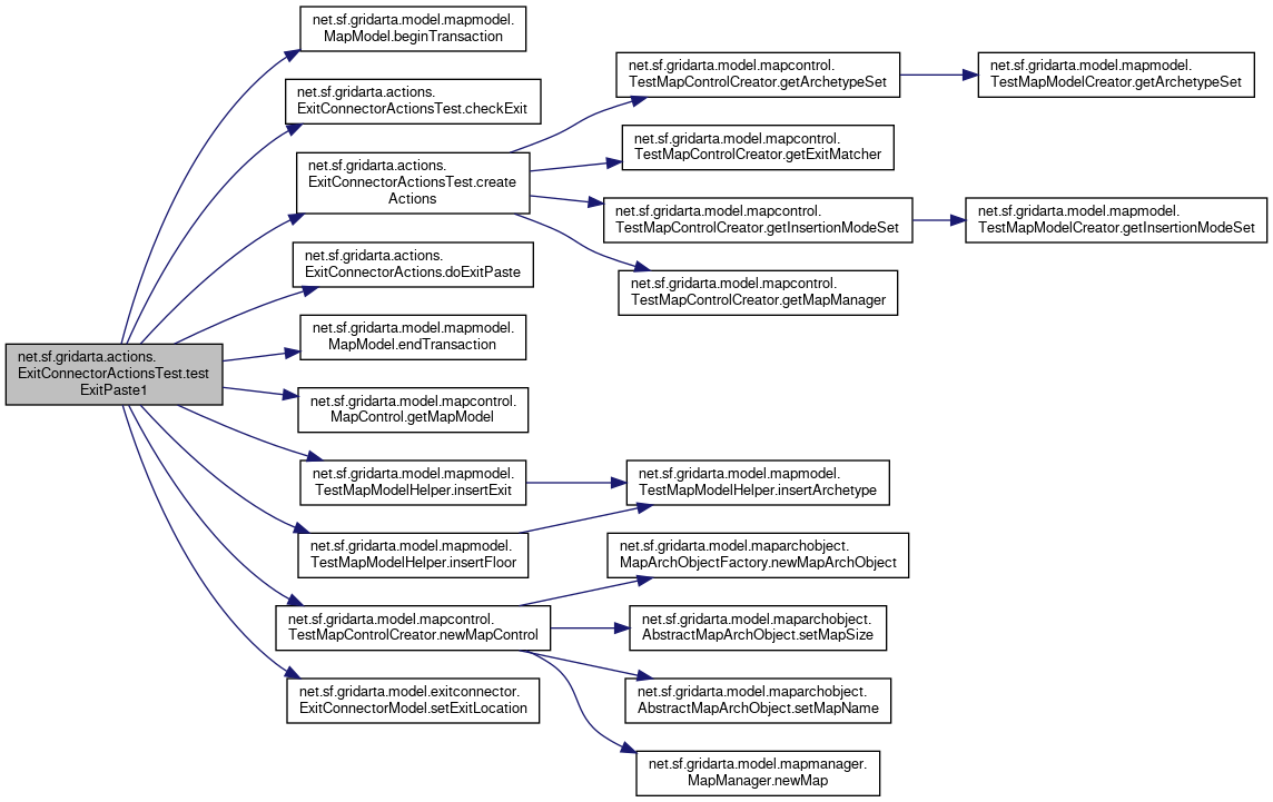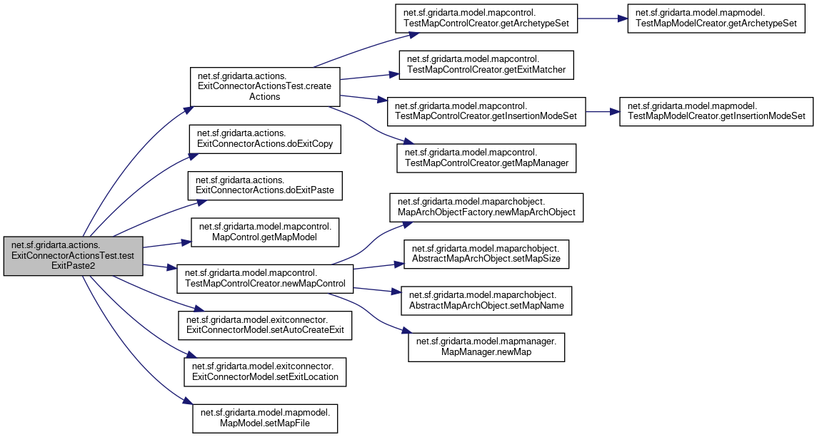 Here is the call graph for this function:| void net.sf.gridarta.actions.ExitConnectorActionsTest.testExitPaste2 | ( | ) |