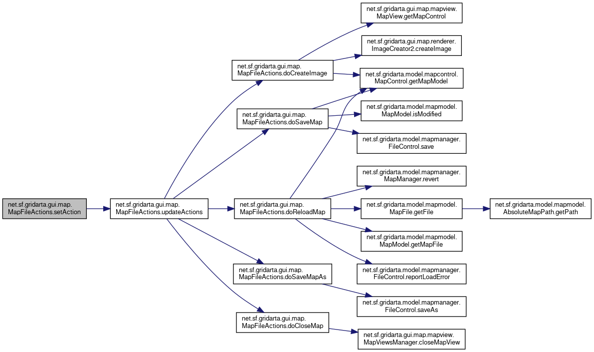 Here is the call graph for this function:| void net.sf.gridarta.gui.map.MapFileActions< G extends GameObject< G, A, R, A extends MapArchObject< A, R extends Archetype< G, A, R >.setAction | ( | @NotNull final Action | action, |