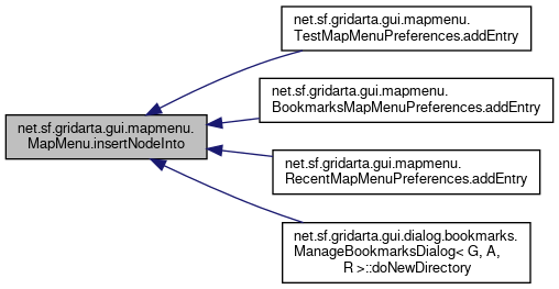 Here is the caller graph for this function:| TreePath net.sf.gridarta.gui.mapmenu.MapMenu.insertNodeInto | ( | @NotNull final MapMenuEntry | mapEntry, |