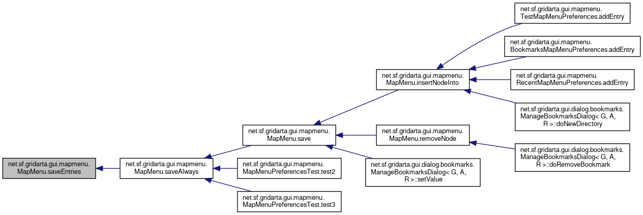 Referenced by net.sf.gridarta.gui.mapmenu.TestMapMenuPreferences.addEntry(), net.sf.gridarta.gui.mapmenu.BookmarksMapMenuPreferences.addEntry(), net.sf.gridarta.gui.mapmenu.RecentMapMenuPreferences.addEntry(), net.sf.gridarta.gui.dialog.bookmarks.ManageBookmarksDialog< G, A, R >.doEditBookmark(), net.sf.gridarta.gui.dialog.bookmarks.ManageBookmarksDialog< G, A, R >.doNewDirectory(), net.sf.gridarta.gui.dialog.bookmarks.ManageBookmarksDialog< G, A, R >.doRemoveBookmark(), net.sf.gridarta.gui.mapmenu.MapMenuPreferencesTest.test2(), net.sf.gridarta.gui.mapmenu.MapMenuPreferencesTest.test3(), net.sf.gridarta.gui.mapmenu.MapMenuTest.testSubDir1(), and net.sf.gridarta.gui.mapmenu.MapMenuTest.testSubDir2().