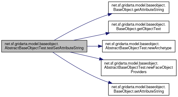 Here is the call graph for this function:| void net.sf.gridarta.model.baseobject.AbstractBaseObjectTest.testSetAttributeString | ( | ) |