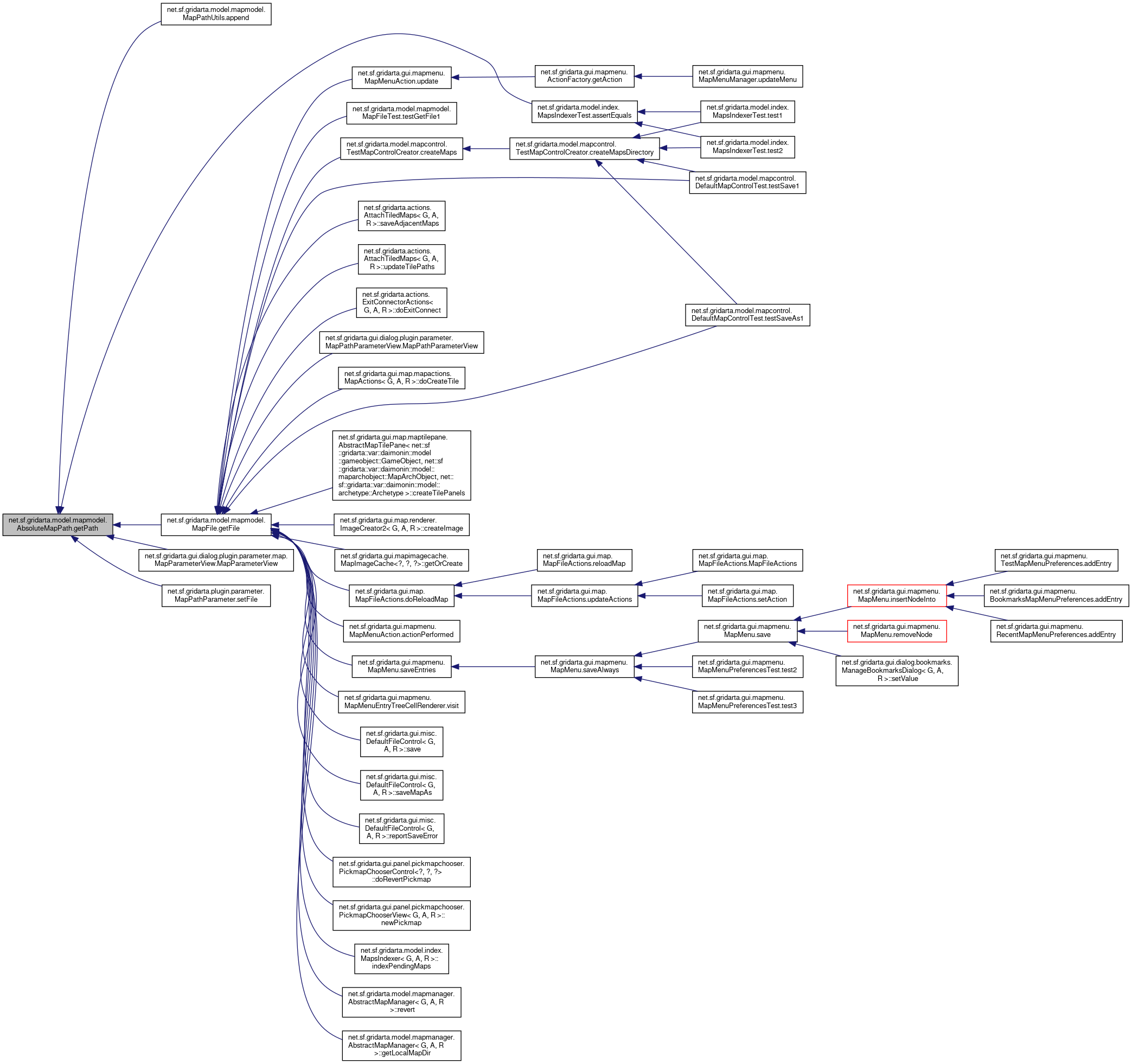 Here is the caller graph for this function:| String net.sf.gridarta.model.mapmodel.AbsoluteMapPath.getPath | ( | ) |